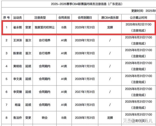 2024-25赛季CBA联赛的休赛期还在继续,一则关于夺冠大热门广东男篮注册新援崔永熙的消息持续升温。据中国篮协更新注册信息,崔永熙已经正式与广东男篮签下4年B类的合同。值得一