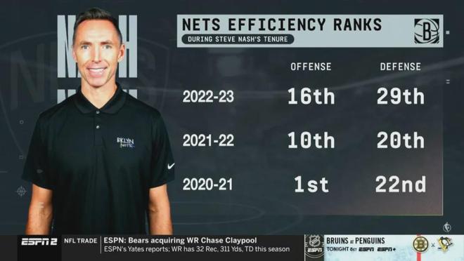 好的球员不一定是好教练。纳什在篮网执教两年半,饱受球迷批评。纳什在篮网一共执教了161场常规赛,球队94胜67负,季后赛战绩7胜9负。在他执教期间,篮网的防守效率一直是20名开外。而且,他跟篮网球星的关系也闹僵了。