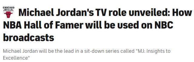 乔丹从未担任过电视节目主持人,但考虑到在90年代他和芝加哥公牛队的王朝时期,他几乎就是NBC篮球报道的代言人,所以与NBC合作是有意义的。