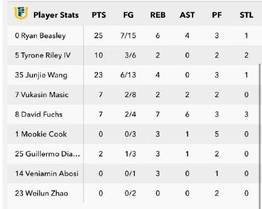 至于赵维伦仅替补登场3分27秒,2中0均是外线三分出手不中颗粒无收,且得分,篮板、助攻、抢断和盖帽5项数据均是0。