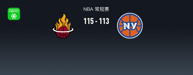 北京时间11月18日NBA 常规赛,迈阿密热火对阵纽约尼克斯。半场热火55-51尼克斯,最终热火115-113尼克斯。迈阿密热火诺曼-鲍威尔19分1板3助,达维昂-米切尔18分2板5助;纽约尼克斯麦