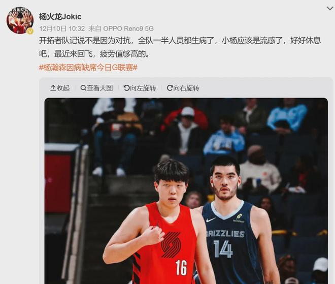 杨瀚森最近不断奔波,5天之内从克利夫兰飞回波特兰,再飞去孟菲斯,打了3场比赛,场均超过20分钟,疲劳导致抵抗力下降,生病可以理解。