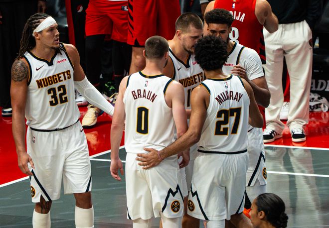 首发防守端总归有人要填坑做绿叶,从布劳恩到戈登,再到约翰逊,最后是约基奇;替补阵容,穆雷根本带不了,但上赛季承接这个任务的是威少,威少不仅利用他的冲击力带动队友,关键威少也能提供防守能量。而本赛季穆雷这一角色属性,是拿着4639万顶薪,他和约基奇同时出战,百回合赢12.2分;穆雷在场时球队百回合赢8.0分;也就是说没有约基奇,穆雷带队净效率值就是-4.2。掘金当下确实很无助,作为夺冠热门,他们只能等待伤员恢复健康,特别是约基奇,他的伤病更急不得。但休赛期为什么轻易抛弃了威少?