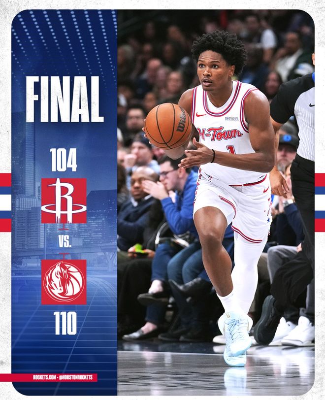 北京时间1月4日,火箭104-110惜败独行侠。这场比赛火箭相当惨烈,开场不到1分钟核心中锋申京就因为脚踝扭伤退场,而且亚当斯因为负荷管理无法登场,火箭内线只有一个卡佩拉能用,老饼皇打了27分钟拿到8分8篮板真的尽力了,可内线防守端太差,独行侠内线命中率高达67.3%。37岁的KD还客串中锋。