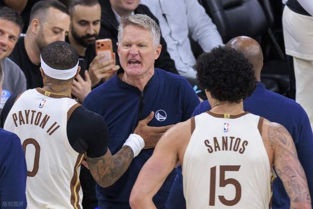 正是这个明显的误判,直接点燃了科尔的怒气,直接对着裁判怒喷,要不是助教和小佩顿拉着,他都要冲到裁判面前理论了。科尔如此生气也是情有可原,想要通过这个来给裁判施加压力,至少能够公正一些。最终,科尔连续吃到2个技术犯规,被直接驱逐出场,同时也送给了快船2次罚球罚球的机会。