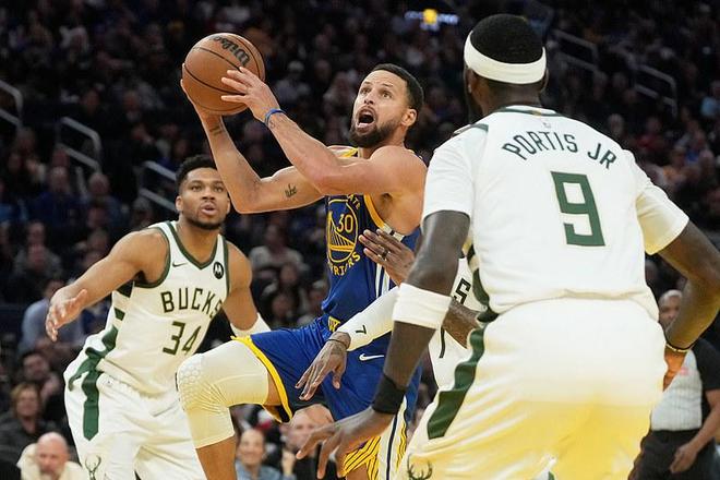 北京时间1月8日,NBA常规赛继续进行,勇士主场对阵雄鹿。本场比赛,勇士当家球星库里发挥出色,拿到31分6板7助,球队也在他的带领下以120-113战胜雄鹿,收获赛季第20胜。比赛中。图源:视