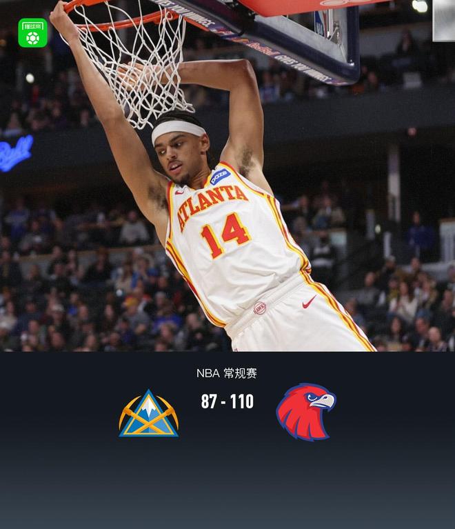 老鹰11087大胜掘金,杰伦约翰逊29+9+6