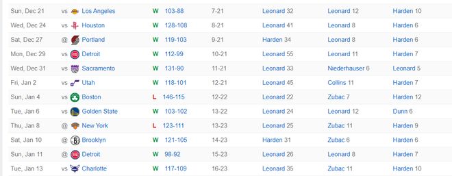 - 北京时间1月13日,NBA常规赛,快船以117-109击败黄蜂拿到三连胜。快船过去的12场比赛赢下了其中的10场,除此之外...发表于: 01-13 15:03