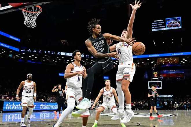 次节比赛,太阳率先一波8-3攻势扩大19分优势,篮网连追6分,太阳维持57-42领先。太阳连得5分扩大20分领先优势,篮网内外开一波9-2攻势追分,太阳很快重新扩大70-53领先优势。篮网回敬一波15-2攻势强势反扑追分,太阳单节32-42被追回10分,上半场结束太阳被追到仅72-68领先篮网。前两节比赛,太阳三分命中数10-11落后,波特13分、威廉姆斯12分与特拉奥雷10分,狄龙4记三分16分、布克12分与吉莱斯皮12分。