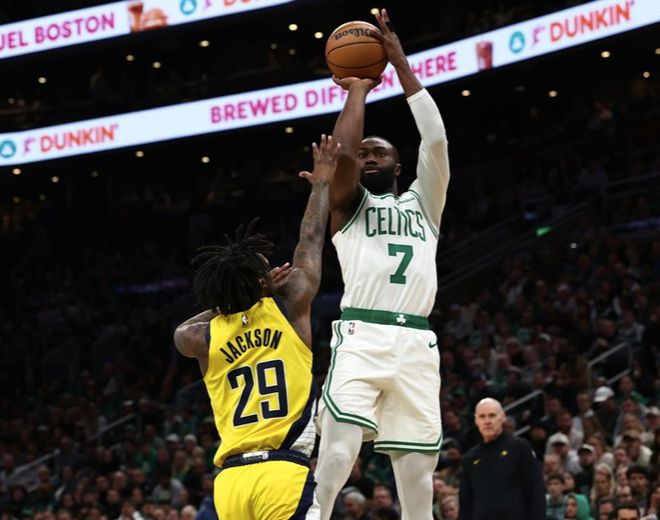 次节比赛,沃尔什和豪瑟相继命中三分,内姆布哈德连续拿分止血,杰克逊三分命中,可随后步行者又陷入得分荒,凯尔特人内突外投连续拿分,布朗两罚全中打出15-0攻势,分差拉开到20分以上,西亚卡姆突破止血,凯尔特人则牢牢占据主动,怀特三分命中,布朗二次进攻打进,半场66-46领先步行者。
