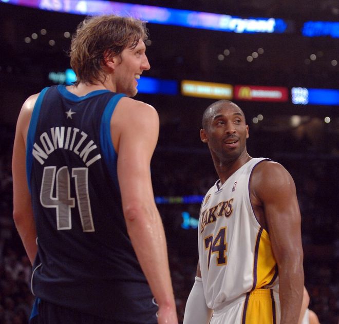 诺维茨基还提到科比的另一个黑历史。当时他跟科比在西部全明星同队,科比连这种娱乐局都认真,当然他在高端局是各种拉胯,所以外界嘲讽过科比。在全明星赛后,以为跟科比交朋友就能不被肘击的诺维茨基,本着好意跟科比打招呼,结果在争球的时候,他被科比肘击了,肋骨被撞。诺维茨基心中有一百万只什么马飞过,他疑惑:至于吗?说好的友谊小船怎么说翻就翻。