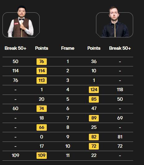 另外一场比赛中,张安达对阵赵心童,双方前四局战成2-2平,不过中场休息后,张安达连胜四局,以6-2击败赵心童晋级八强。