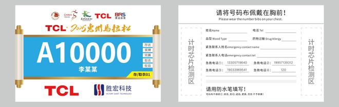 4.本次比赛采用一次性感应计时芯片,不收取芯片押金。计时芯片将在领物现场与号码布同时发放。