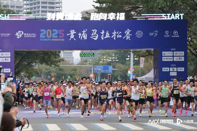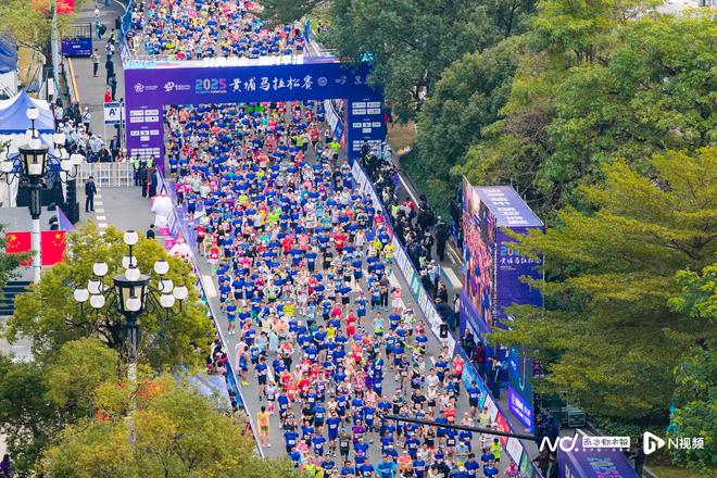 2025黄埔马拉松赛在科学城绿轴广场鸣枪开跑。