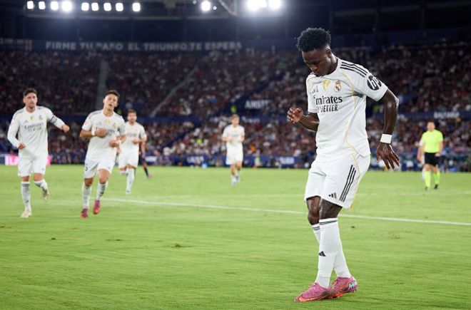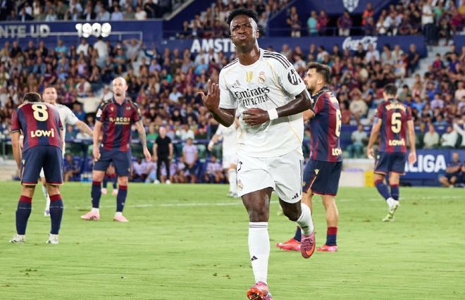 本场比赛维尼修斯传射建功,马斯坦托诺也打进了加盟球队后的首粒进球,下半场姆巴佩3分钟梅开二度,最终帮助皇马4-1大胜莱万特。