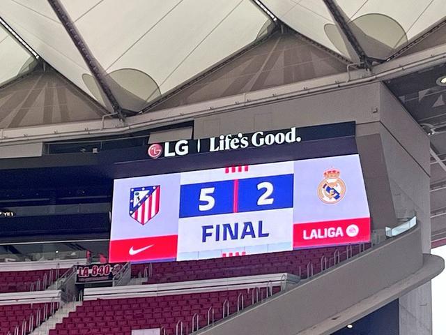 西甲第7轮,皇家马德里客场2-5不敌马德里竞技,这是皇马自2018年10月以来首次在西甲单场丢了5球。