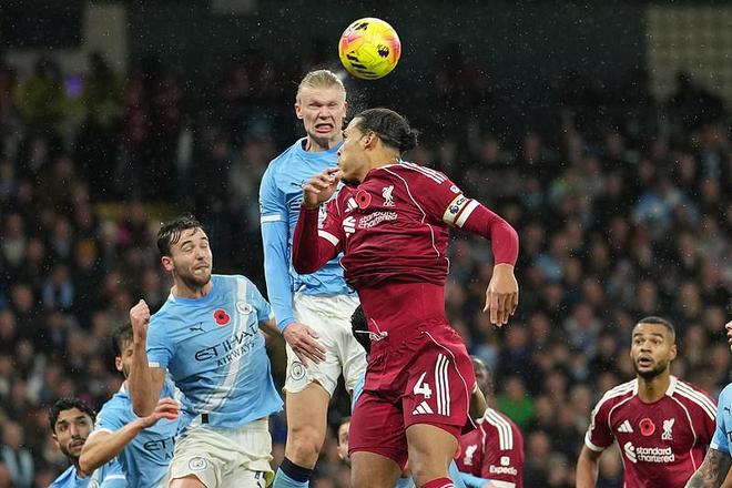 比赛中。图源:视觉中国北京时间11月10日凌晨,英超第11轮迎来一场巅峰对决,曼城主场迎战利物浦。比赛开始后,主场作战的曼城占据主动,上半场第28分钟,曼城球员努内斯传球至禁区,哈兰