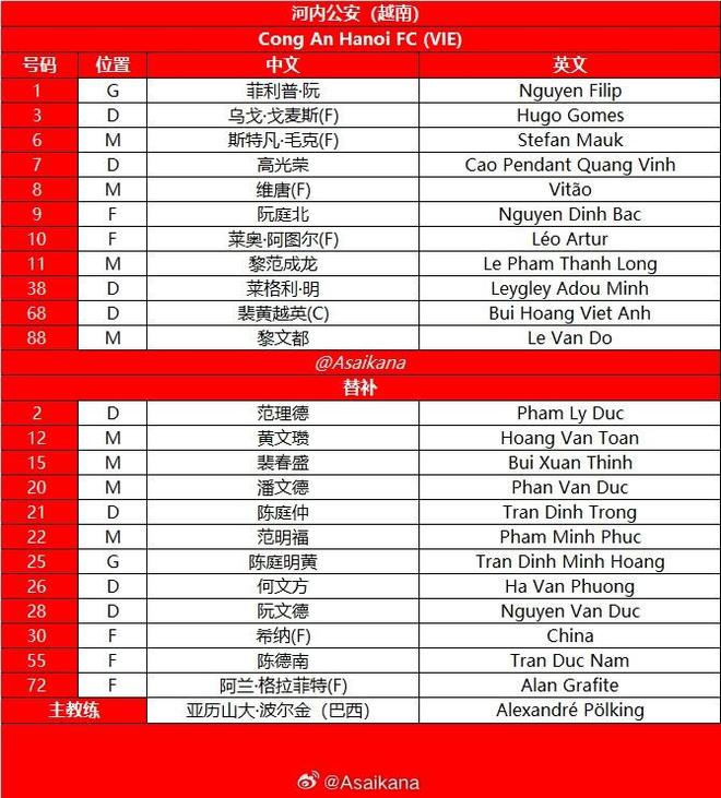 北京时间9月18日20:15,亚冠二级联赛小组赛第一轮,北京国安坐镇主场迎战越南球队河内公安,本场比赛主裁判是泰国裁判尊巴温,赛前双方公布首发: