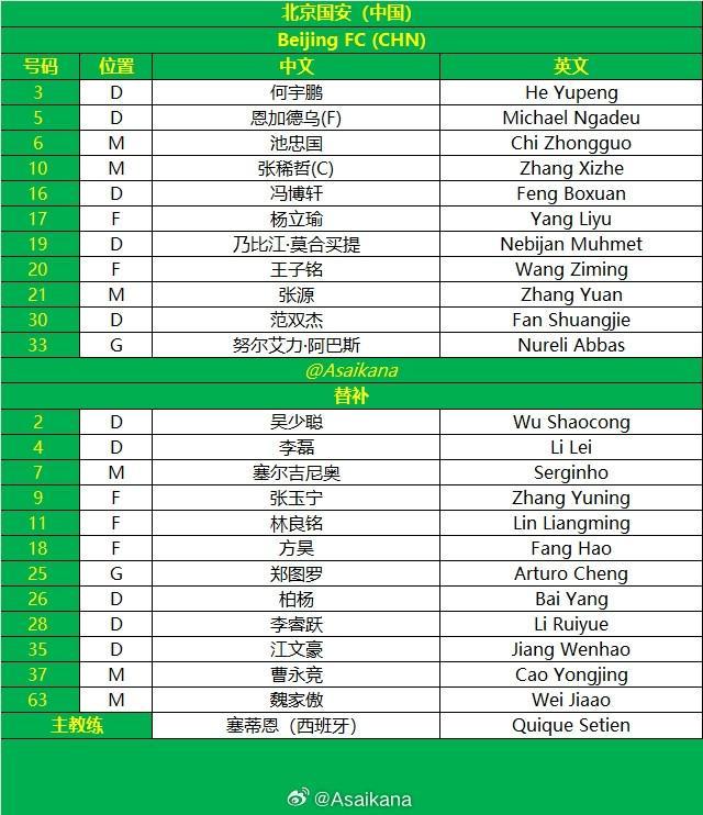 国安vs河内公安:恩加德乌单外援首发,努尔艾力国安一线队首秀