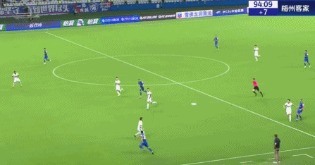 第93分钟,吴曦直塞,于汉超突入禁区之后无私横传,无人盯防的杨皓宇推射破门,6比1!