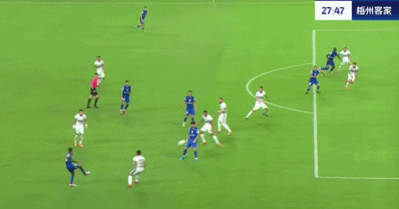 第27分钟,马纳法右路挑传,吴曦禁区内顺势挑射破门,2比0!