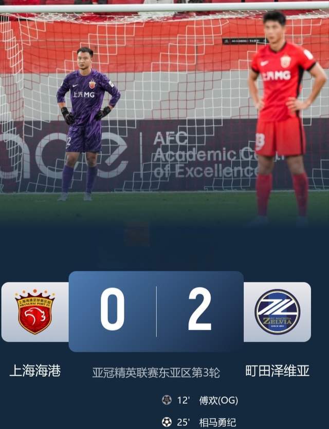 此后,海港队球门险些再次失守,最终0-2侥幸小负。