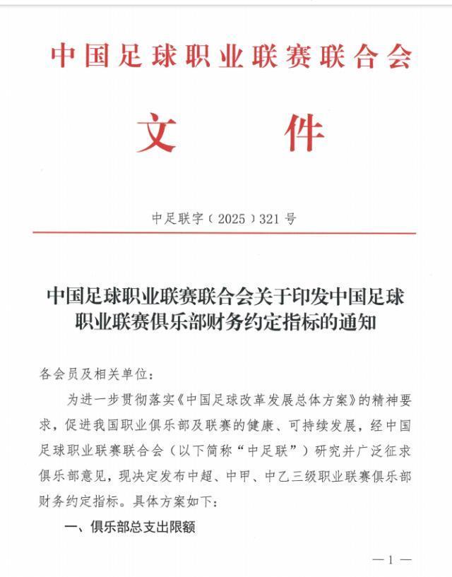 体坛周报全媒体原创12月3日,中国足球职业联赛联合会发布了《中国足球职业联赛联合会关于印发中国足球职业联赛俱乐部财务约定指标的通知》,该文件是2021年中国足协发布的《关
